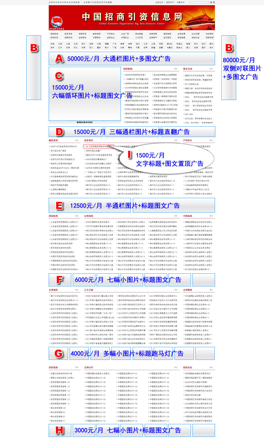 1、網站首頁各廣告位的圖、文、視頻廣告收費標準,請參見下方鏡相圖示。